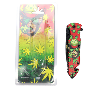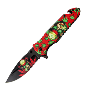 - 13923 - 8.5" Monkey Design Red Handle Spring Assisted Folding Knife W/ Belt Cutter
