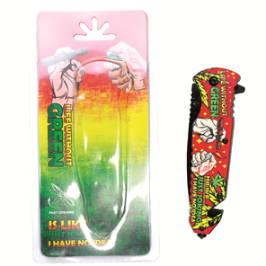 Spring Assisted Folding Knife 8.5" Overall Knife Length 5" Handle Length 3.5" Blade Length 3CR13 Stainless Steel Hands Design on Handle & Blade Red Handle Blister Packing Plastic Handle Belt Cutter Belt Clip Ultra Sharp...