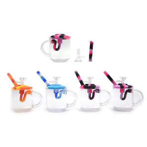 Glass mug design with silicone lids and built-in straws 100*140mm Comes in 5 bold color combos including rainbow, pink, and blue swirl Includes a detachable glass bowl for concentrate use Easy to disassemble and clean...