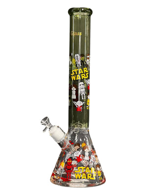 3 DESIGNSGOLD STARWARS,GREEN STARWARS,BLUE POKEMON9MM BEAKER16 INCHThickbase GlassSold individually!