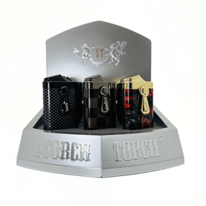 61737-2T/Scorch TorchDeluxe 2Torch/push to lite/cigar punch/asstmmetal&designs9 per DisplaySold by Display!