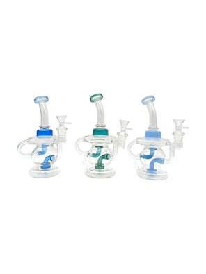 MG-388Recycler BongSize: 8 inchesColors: Blue, Lake Green, Jade BlueSold individually!