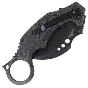 13495 - Zomb-War 7" Grim Reaper Black Blue Folding Knife Stainless Steel