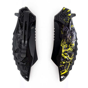 - 14643 - Defender-Xtreme 7.5" Dragon Design ABS Handle 3CR13 Steel Spring Assisted Folding Knife