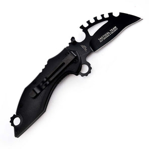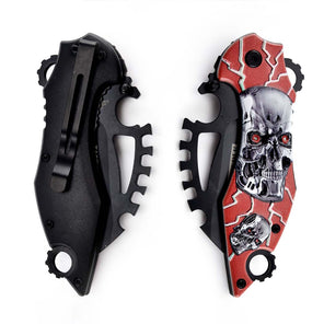 - 14645 - Defender-Xtreme 8" Skull Design Grey ABS Handle 3CR13 Steel Spring Assisted Folding Knife