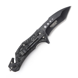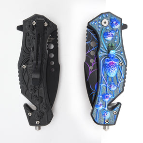 14648 - Defender-Xtreme 8.5" Spider Design Blue ABS Handle 3CR13 Steel Spring Assisted Folding Knife