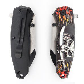 - 14657 - Defender-Xtreme 7" Skull Design ABS Handle 3CR13 Steel Spring Assisted Folding Knife