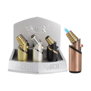 4.5" Scorch Torch Tank Triple Torch•45 Degree•Cigar Punch & ToolColor: AssortedHeight: 4.5"Design: AssortedQuantity: 9 Pcs / DisplaySold by Display!
