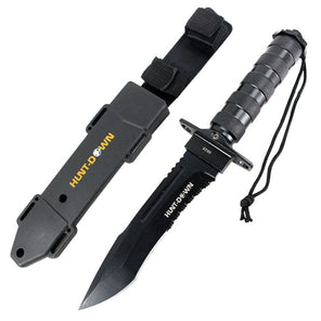 - 9825 - Hunt-Down 12" All Black Fixed Blade Survival Knife - Survival Kit & Compass