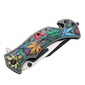 Folding Knife 8" Overall Knife Length 4.5" Handle Length 3.5" Blade Length 3CR13 Stainless Steel Multi Leaves Design Handle Plastic Handle Two Tone Blade Belt Cutter Glass Breaker Belt Clip Ultra Sharp Blade Flexible For...