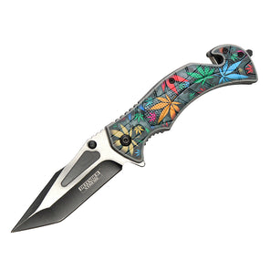 - Defender-Xtreme 8" Multi Leaves Design Handle Two Tone Blade Folding Knife (13897)