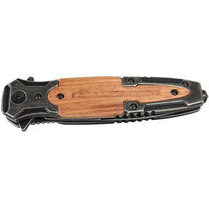 - Defender Xtreme Folding Knife with Stone Washed Blade Wood Handle (9408)