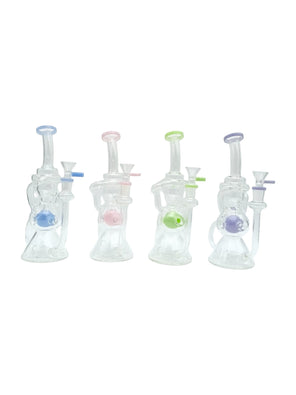 MG-381Recycler BongSize: 8 inchesColors: Milk Purple, Milk Pink, Blue Jade, Milk GreenSold individually!