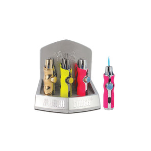 Scorch Torch – Wavy TorchGrip button to liteCigar punchSolid ColorsHeight: 4.75″Quantity: 9 Pcs / Display8 Displays / Master CaseSold by Display Only!