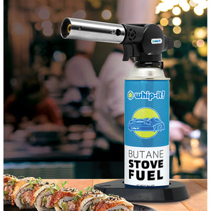 Perfect for indoor and outdoor use, the Whip-It! Blow Torch will shine in any culinary situation. Lightweight and portable with a powerful flame, this torch will surely get the job done when caramelizing or browning your next culinary creation. Its sleek look and feel paired with Whip-It! butane fuel canisters make this torch extremely user friendly to both seasoned and amateur cooks alike.