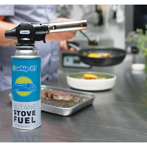 Perfect for indoor and outdoor use, the Whip-It! Blow Torch will shine in any culinary situation. Lightweight and portable with a powerful flame, this torch will surely get the job done when caramelizing or browning your next culinary creation. Its sleek look and feel paired with Whip-It! butane fuel canisters make this torch extremely user friendly to both seasoned and amateur cooks alike.