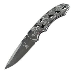 Crafted Using High Quality Stainless Steel Overall Length: 8" Blade Length: 4" Handle Length: 4 Rose Petal Desig Silver Handle Belt Clip Rsut & Corrosion Resistant Tactical Hunting Knife Flexible for a Range of Applications...